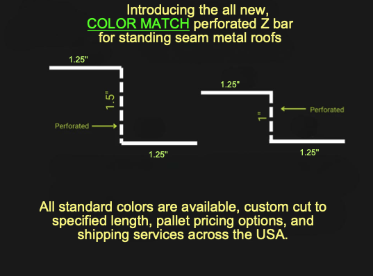 Z Bar is used when metal trim needs to be attached to the top of a standing seam panel. The Z Bar provides the trim with something to attach to and creates a fixed point of contact. It's used most frequently at the ridge, peak, transition, and endwall.