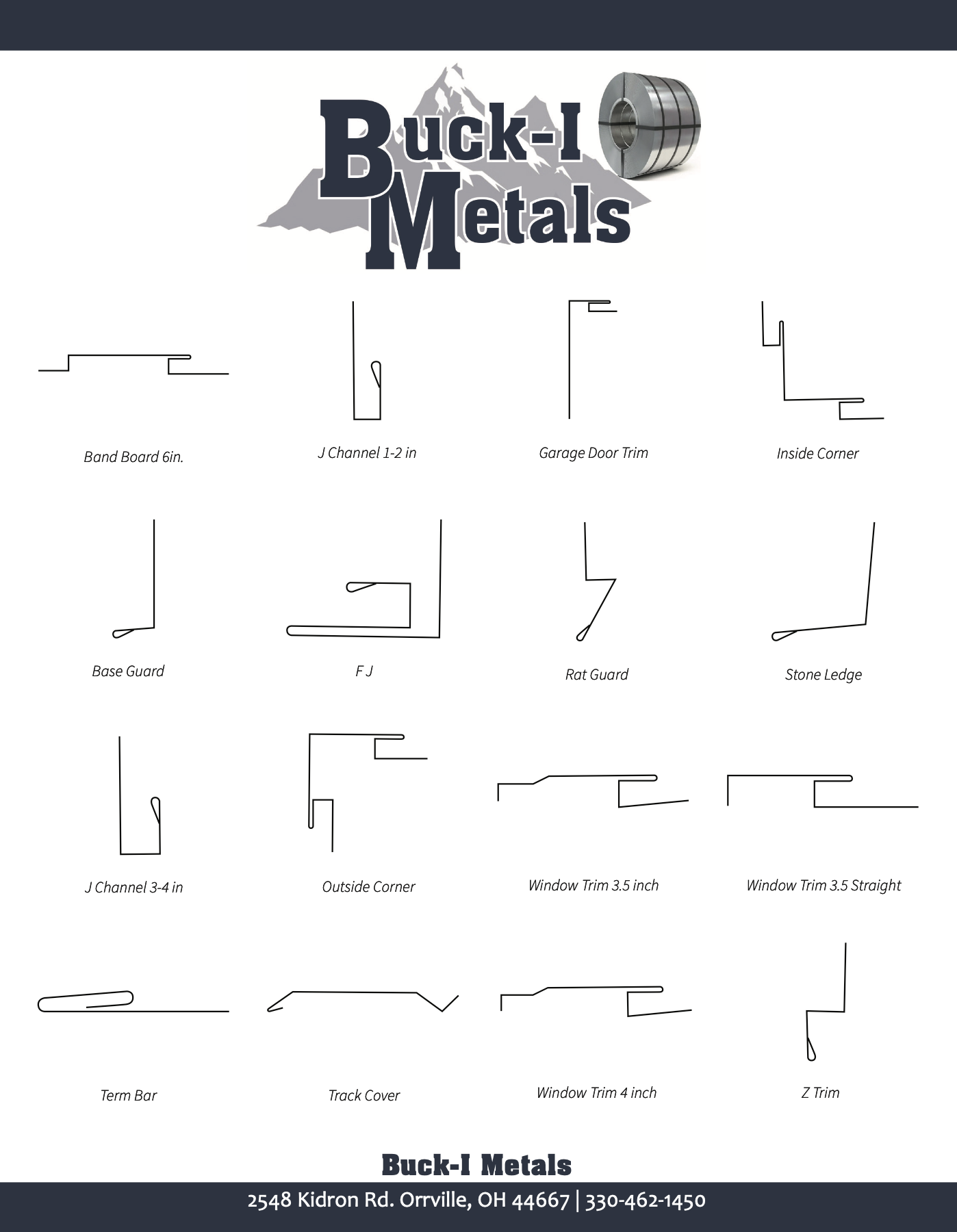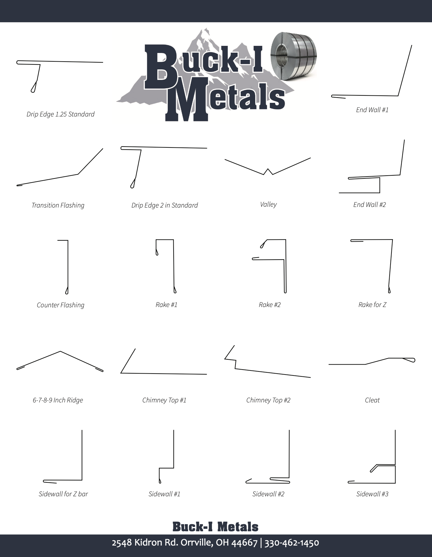 Buck-I Metals manufactures standing seam metal roof and wall panel trims to suit your building’s needs. Our trim products include angles, channels, drip cap, flashing and more.